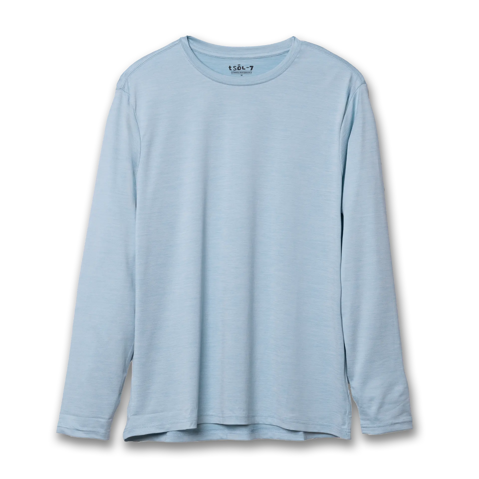 Designed to ensure a superior combination of breathability and protection from the elements. Includes a ribbed crew neck, thumbholes at the sleeves, hemmed bottom sun protection, anti-microbial, 4-way stretch, and easy care.